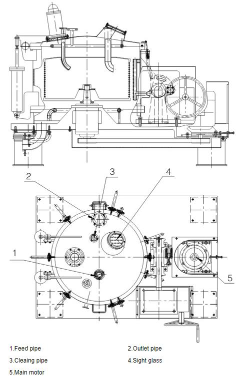 4. The flip cover is provided with a feeding tube, a washing tube, an observation mirror, and an illumination hole. Equipped with an online cleaning system (optional) to clean the inside of the centrifuge, such as the inner wall of the centrifuge shell, the inner and outer surfaces of the special drum, and the surface of the sump, to ensure cleanliness requirements and comply with GMP specifications.